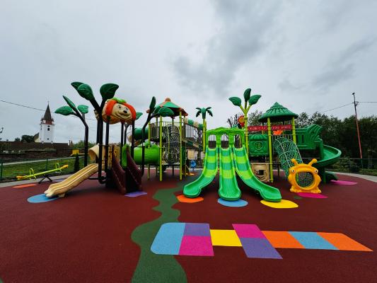 Noul loc de joacă din comuna Cristian, județul Sibiu. După temeinice lucrări de amenajare (incluzând decopertarea și săpături la cote stabilite, turnarea de beton armat, realizarea straturilor de fundație din balast și piatră spartă, montarea bordurilor, turnarea tartanului și realizarea aleilor pietonale și a platformelor din pavaj prefabricat din beton) s-a reușit montarea echipamentelor, a băncilor stradale și realizarea gropii cu nisip. Astfel, în spațiul vechiului parc s-a montat un complex de joacă (de mari dimensiuni), leagăne, balansoare și figurine pentru copii (mici și mari), toate echipamentele noi fiind certificate pentru conformitate, cu normativele în vigoare.